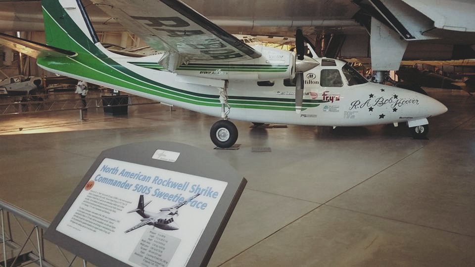 He was the national spokesman, and was featured on posters promoting the fueling hardware, to convince the owners of some 100,000 piston-powered airplanes to narrow their avgas fuel ports to two or 2.36 inches, as well as encourage aircraft fuelers to install 2.6-inch-wide spouts on jet-fuel nozzles The innovation gained the support and funding of the National Air Transportation Association (NATA), the General Aviation Manufacturers Association (GAMA), and various other aviation groups. Today, Hoover Nozzles are now required on jet fuel dispensing equipment in the United States, saving the lives of countless pilots, crew and passengers. Bob Hoover recounted the story of the crash at the end of his autobiography, Forever Flying , published in 1997. However, he misremembered the accident as occurring in 1989. Epilogue... Although a reward of $15,000 was offered for information about the person or persons who set the two fires, the culprits were never apprehended. In 2001, the mystery of who set the museum fire was solved. Originally thought to be the work of a serial arsonist, San Diego Fire Battalion Chief Art Robertson learned that the fire was started by three Chula Vista teenagers who confessed they were trying to stay warm. They were not arrested as the statute of limitations for filing an arson lawsuit had already run out. Bob Hoover was inducted into the National Aviation Hall of Fame in Dayton, Ohio, in 1988, retired from air show flying in 1999, and gifted Shrike N500RA to the Smithsonian Institute in 2003. In a final flare of air-showmanship, when he and his ferry pilot delivered the Shrike to the Museum’s Steven F. Udvar-Hazy Center in Virginia – they did a fly-by of the center’s Donald Engen Tower. Upon landing, the Shrike taxied up to the building and, much to the surprise of the audience, rolled directly into the north entrance of the Center. Easily the most recognized Shrike Commander in the world, it remains on display there.