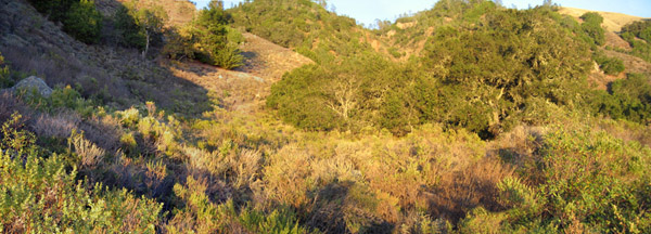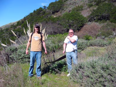 Boon Hughey is a guy that loves the outdoors. Over the years he has hiked many miles of trails along the coastal ranges of Central California. It was on one of his hikes of exploration in 2001 that he made an interesting find. A prop blade from an airplane. But from where might a prop like this come from and how did is end up in the middle of nowhere? After a little bit of searching on the Internet, Boon found this page and contacted us about the prop. In 2003, we met with Boon and relocated the prop. We then formulated a plan to recover the prop at a later date and return it to Air Station San Francisco for future use in a memorial. |