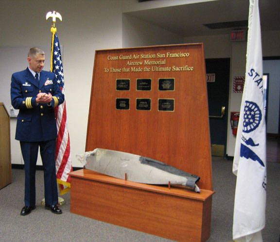 | The Final Chapter On May 28, 2010 the Coast Guard Air Station San Francisco dedicated a memorial to all this who had lost their lives during missions from Coast Guard Air Station San Francisco. The station's Commanding Officer, Commander Sam Creech, said that the propeller of HU-16 2128 was incorporated into the memorial to serve as a constant reminder of what can happen on any mission. |