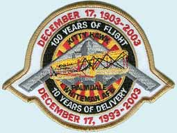 This B-2 Commemorative Patch was flown on Air Vehicle 8, "The Spirit of Missouri" (USAF Serial Number 88-0329), from Palmdale, California, to Whiteman Air Force Base, Missouri, on December 17, 2003, as part of the 10th Anniversary Re-enactment Ceremony commemorating the first production B-2 delivery. The "Spirit of Missouri", piloted by Col. Scott Land, 9th Operations Group deputy commander, and Lt. Col. Rich Vanderburgh, soars over Whiteman during a special flyover re-enacting the original B-2 delivery 10 years earlier. Vanderburgh, a 509th Operations Support Squadron member, was the most experienced B-2 pilot in the Air Force with over 1,500 sortie hours. The crew swooped low over a flight line crowd of 1,500 flag-waving guests, and they delivered their flight documents to Col. Doug Raaberg, 509th Bomb Wing commander. The occasion also marked the announcement by Lt. Gen. Bruce Carlson, 8th Air Force commander, of "Full Operational Capability" status for the B-2 bomber and the 509th Bomb Wing. This signified fulfillment of the original requirements for the bomber. |  | Cover Flown on DC-3 #N143D over Kitty Hawk During the 'Centennial of Powered Flight' Celebration |